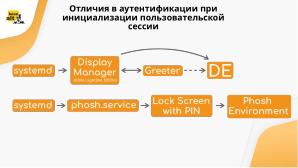Процесс логина в Phosh (Phone Shell) имеет несколько особенностей, которые отличают его от традиционного механизма логина на десктопе. Эти отличия связаны с его предназначением для мобильных устройств и упрощённым подходом к аутентификации: