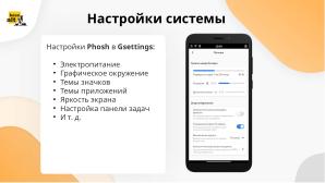- Phosh: Прямой запуск Phosh с заданным пользователем Экран блокировки Аутентификация Отображение интерфейса Phosh.